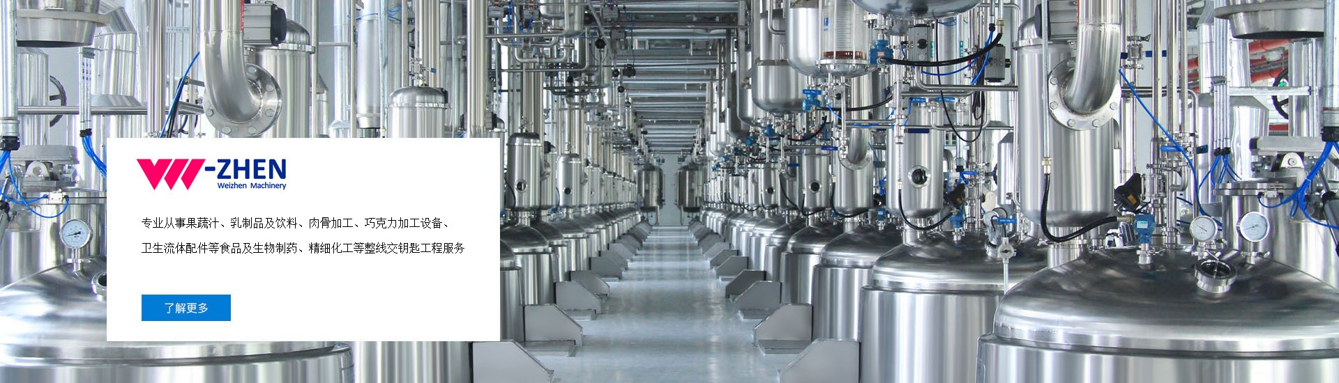 温州唯真机械有限公司坐落于美丽的东海之滨---温州“中国食品制药机械产品基地”工业园区内,是一家专注于健康装备领域的专业化科技发展型企业。公司集科研开发、工艺设计服务、工程制造、安装调试及培训为一体,专业从事果蔬汁、乳制品及饮料、肉骨加工、巧克力加工设备、卫生流体配件等食品及生物制药、精细化工等整线交钥匙工程服务,公司率先引进、消化国外先进技术及工艺,持续创新,积极促进行业内的深入交流与合作,推动行业的健康有序发展。我们坚持发展科技为依托,不断吸收国内外先进制药、食品机械加工经验,大胆创新研制。引进高素质人才,强化企业内部管理,以灵活的经营机制积极参与市场竞争,以质量服务求生存、以科技进步图发展,赢得了广大客户的支持和信赖,在市场经济大潮中不断探索前进。 唯真机械在业内已取得国内众多客户的肯定和支持的基础上,不断提升核心竞争力,不断优化产品结构,不断完善管理机制,积极引进技术人才,以强大的技术实力为后盾,致力新产品的设计、开发、推广,务求发最优良的品质、全新的唯真形象,回报广大客户。